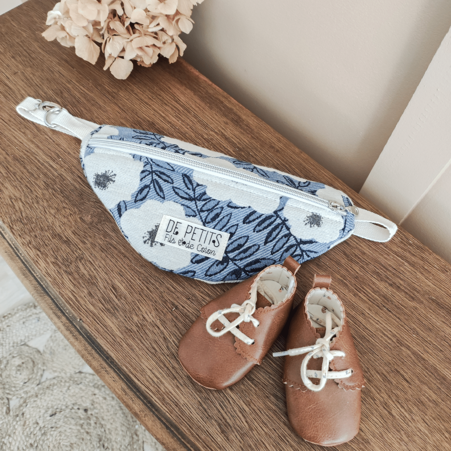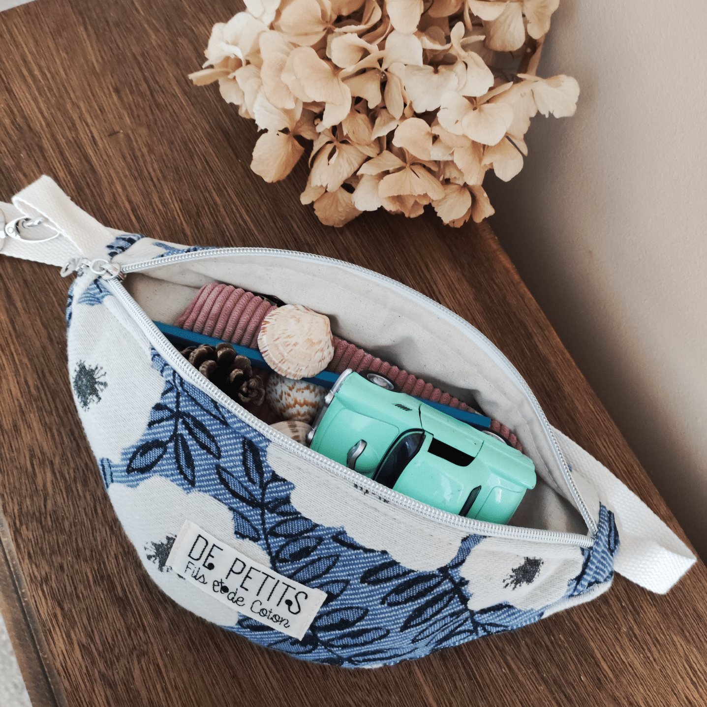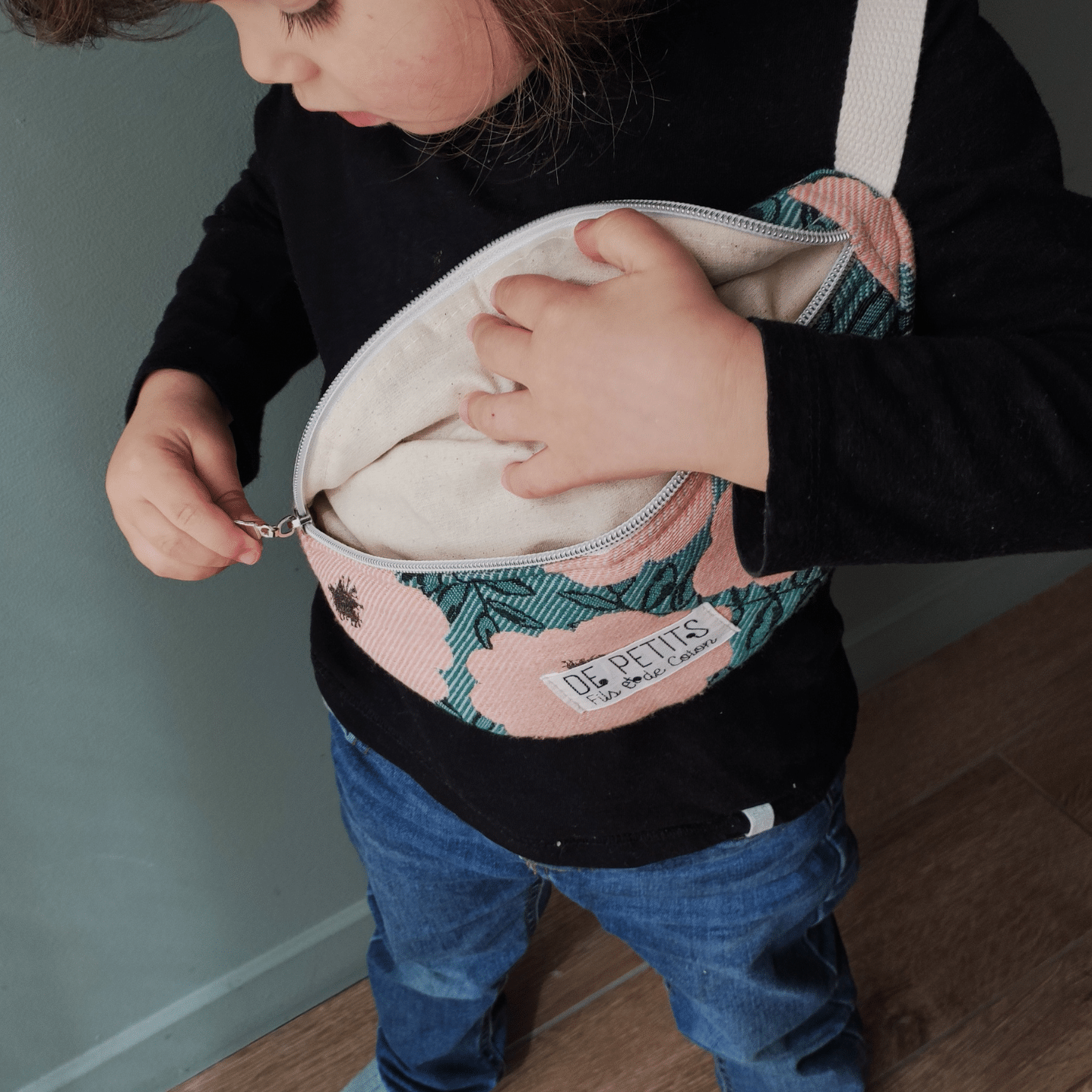 Enfin si tu souhaites de l’uni à l’extérieur, mais une explosion de fleurs à l’intérieur, alors crées son sac banane personnalisable